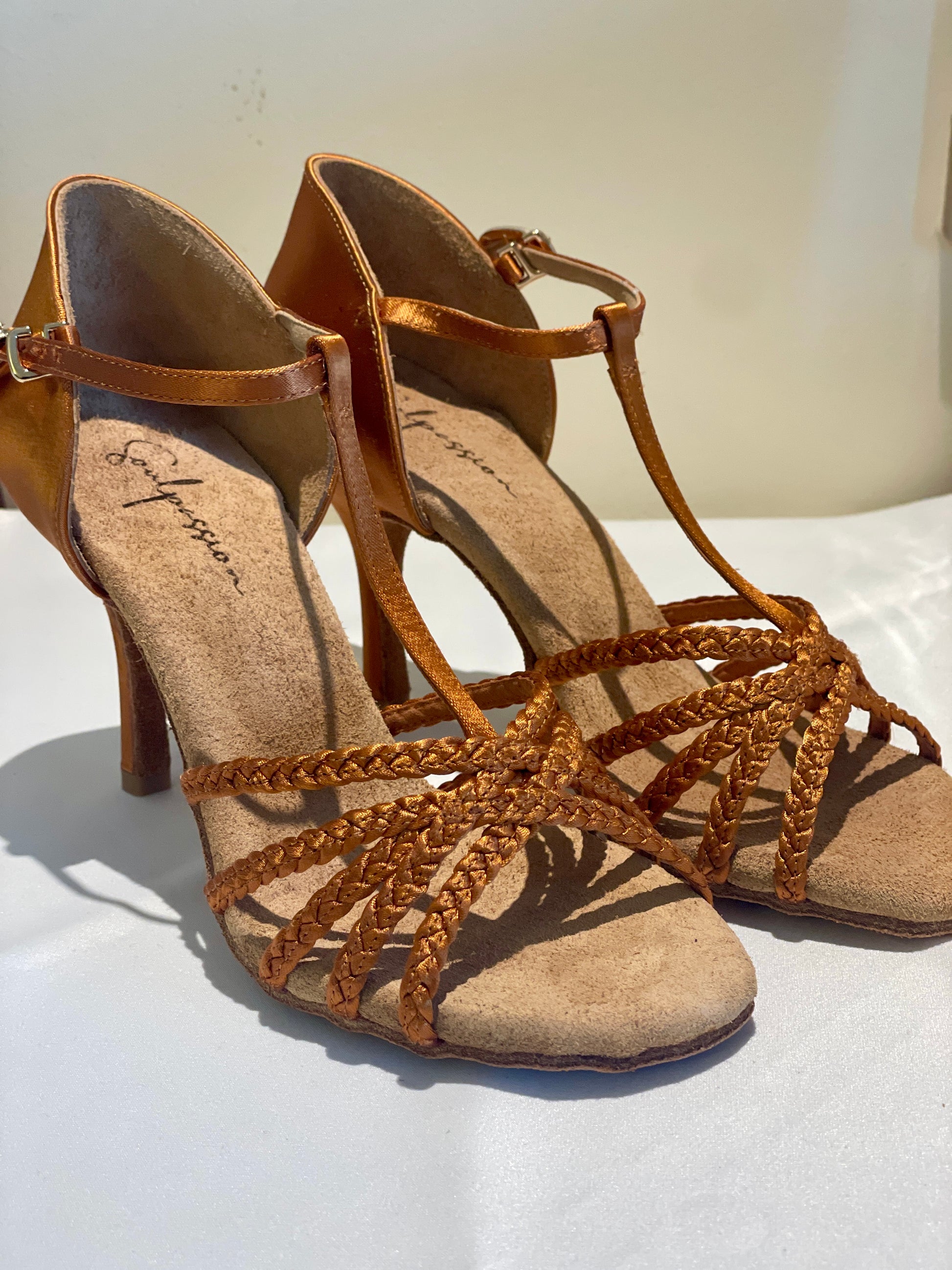 Style 101 - Intuition - T-bar Dark Tan Satin Twist Strap
