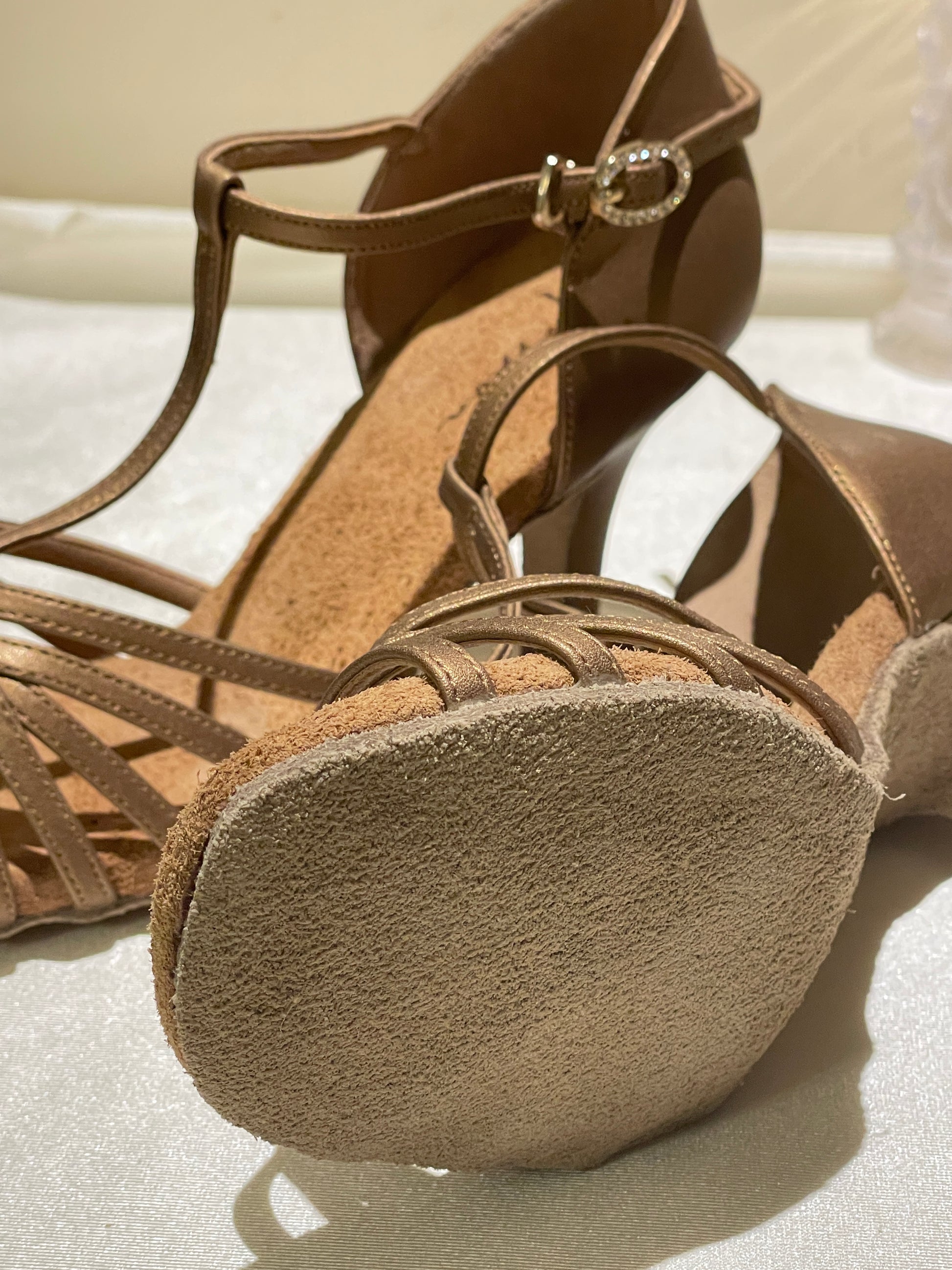 Expertly crafted from smooth tan leather, the Style 102 T-bar heel boasts a 7.5cm straight heel for a sleek and sophisticated look. Insole, outsole, and upper are made from high-quality leather for ultimate comfort and durability.