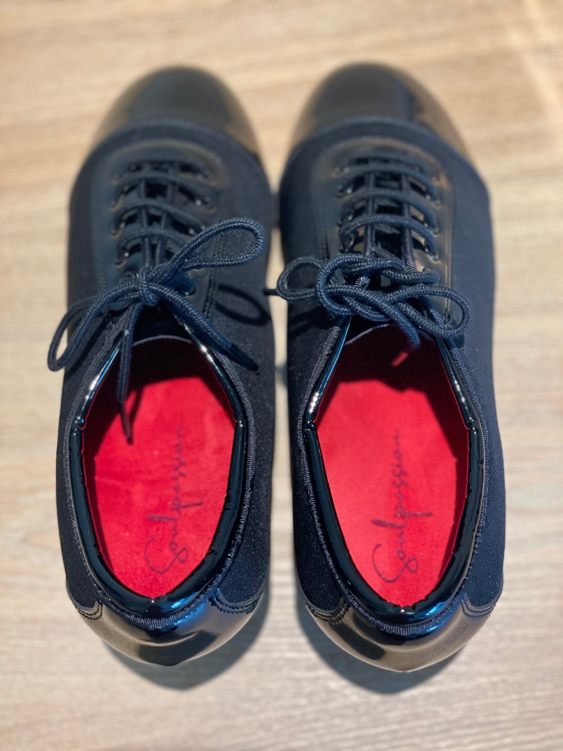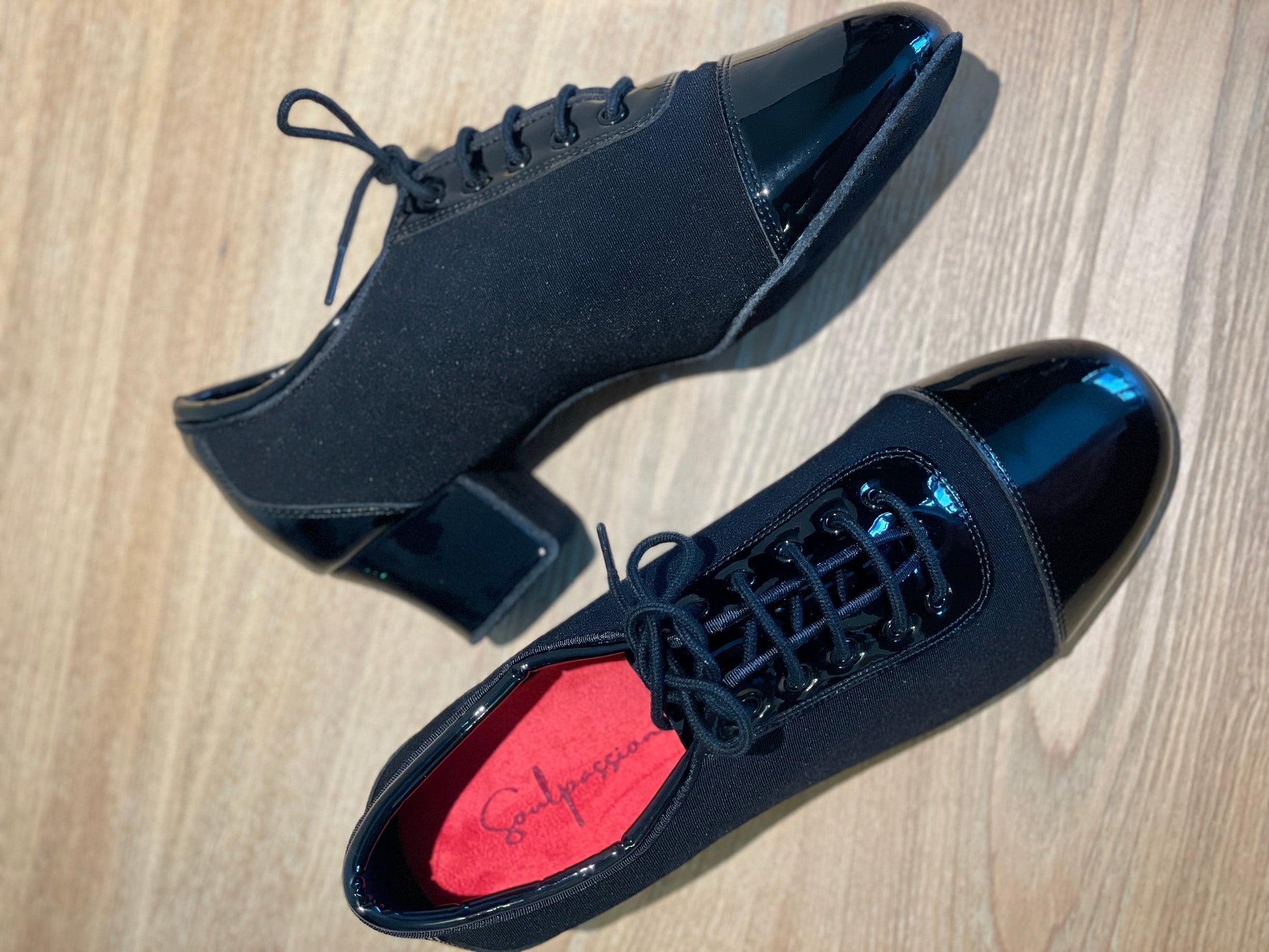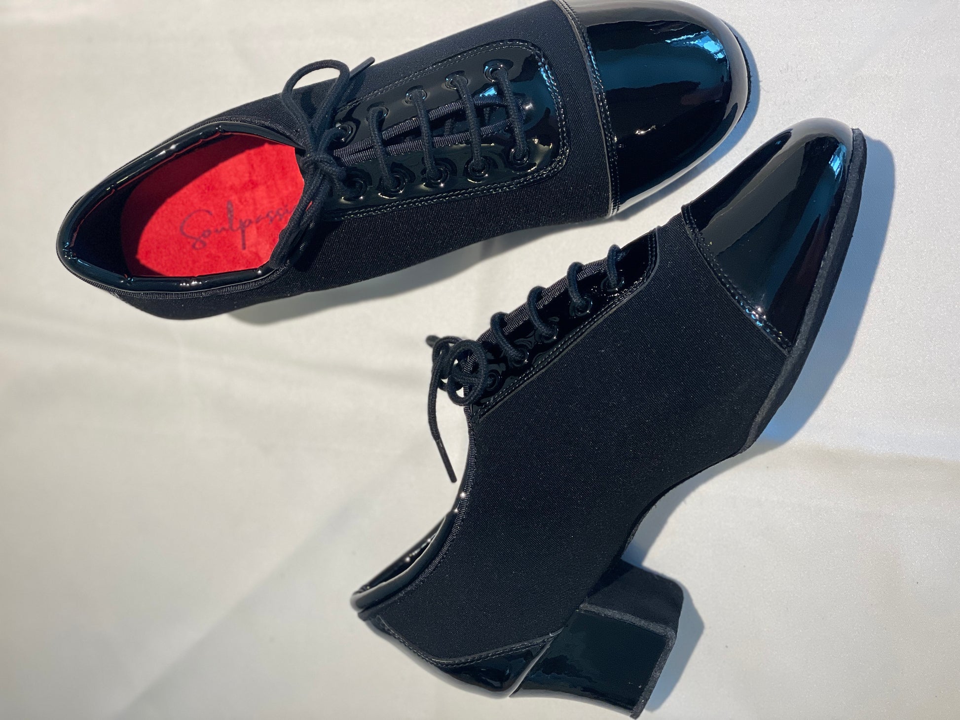 Style 402 - Matteo - Black Patent Leather/Stretch Fabric 3.5cm/5cm Heels