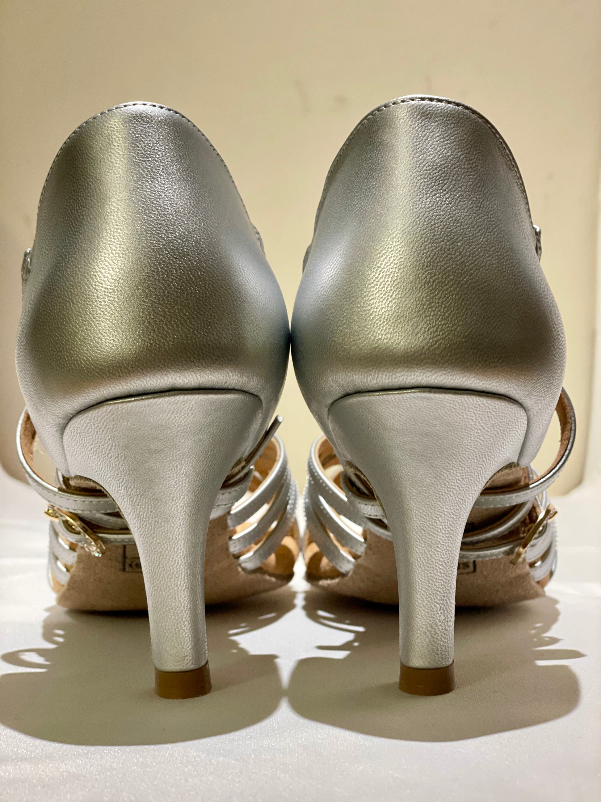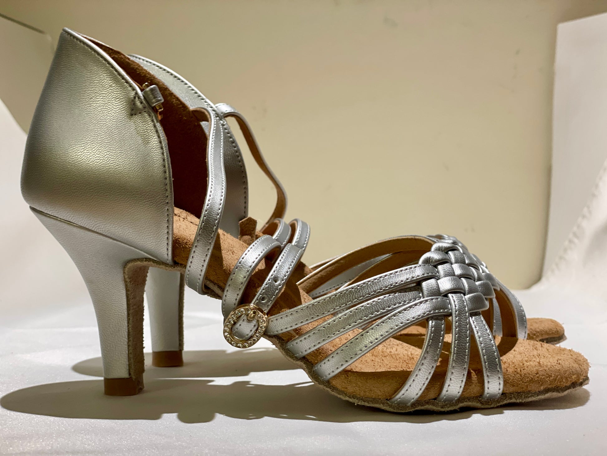 Introducing Style 108 - Silver Leather 7.5cm Straight! This stunning shoe features a sleek silver leather design, adding an elegant touch to any outfit. With a comfortable 7.5cm heel, these shoes provide both fashion and functionality. Elevate your style and step confidently with Style 108.