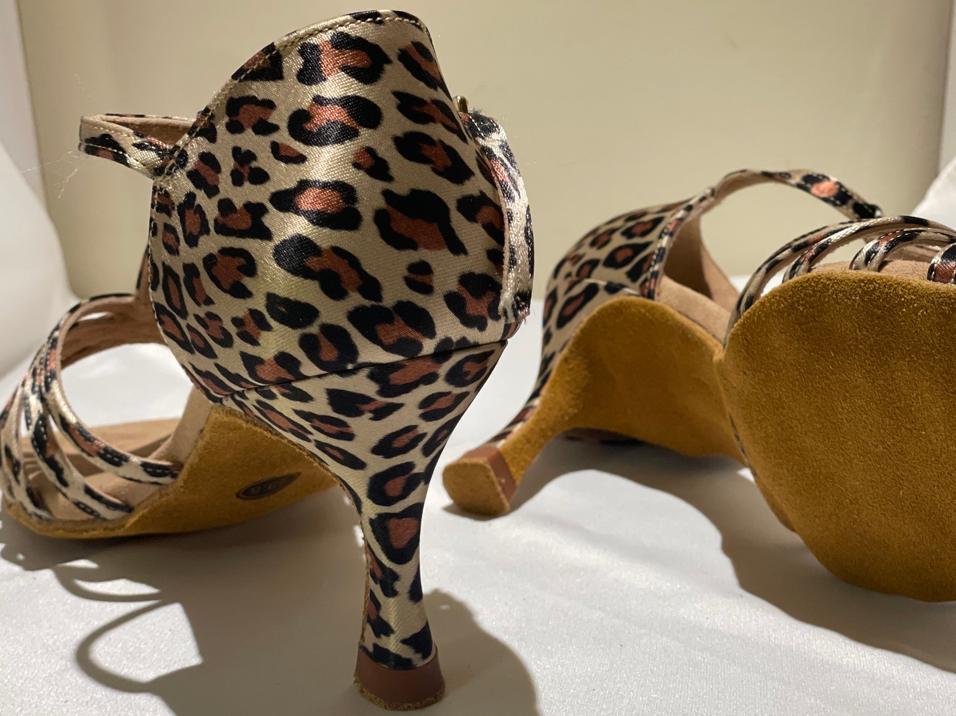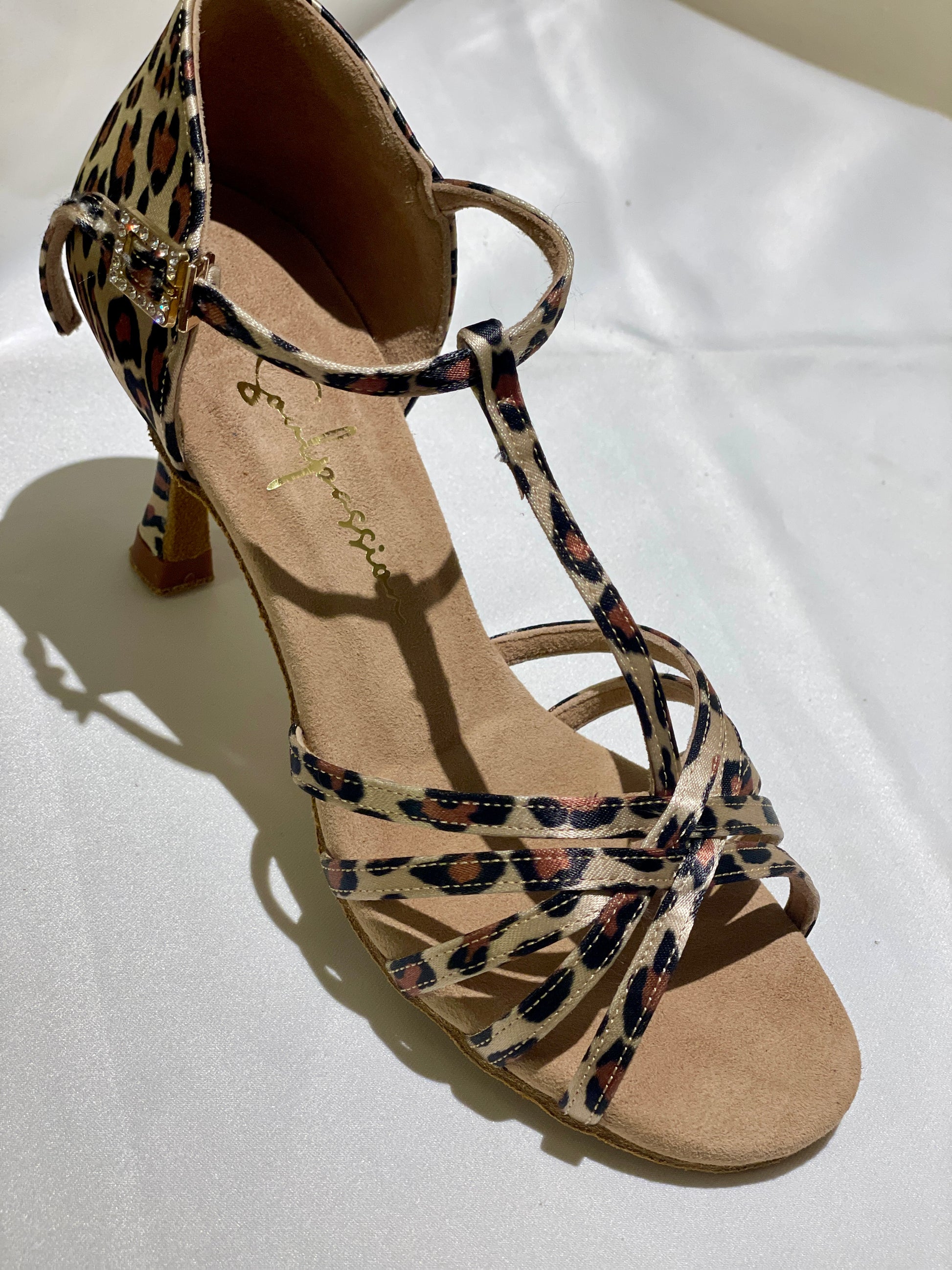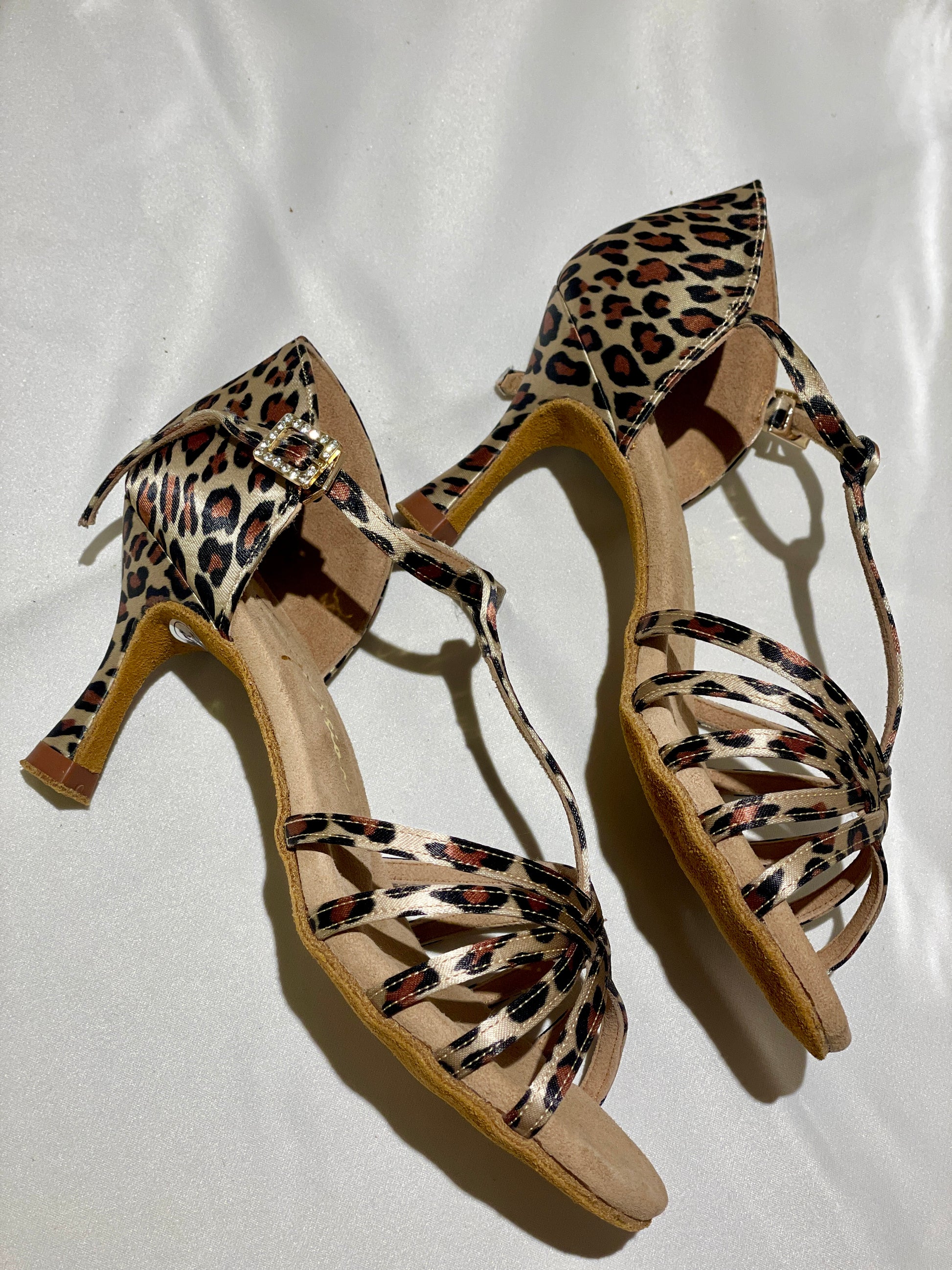 Elevate your style with our Style 109 - High-end Leopard Satin T-strap heels. The 7.5cm flared heel is the most beginner-friendly heel it's Super stable while the leopard print adds a touch of wildness and bring you more energy. Step out in confidence and turn heads with every step in these eye-catching heels.