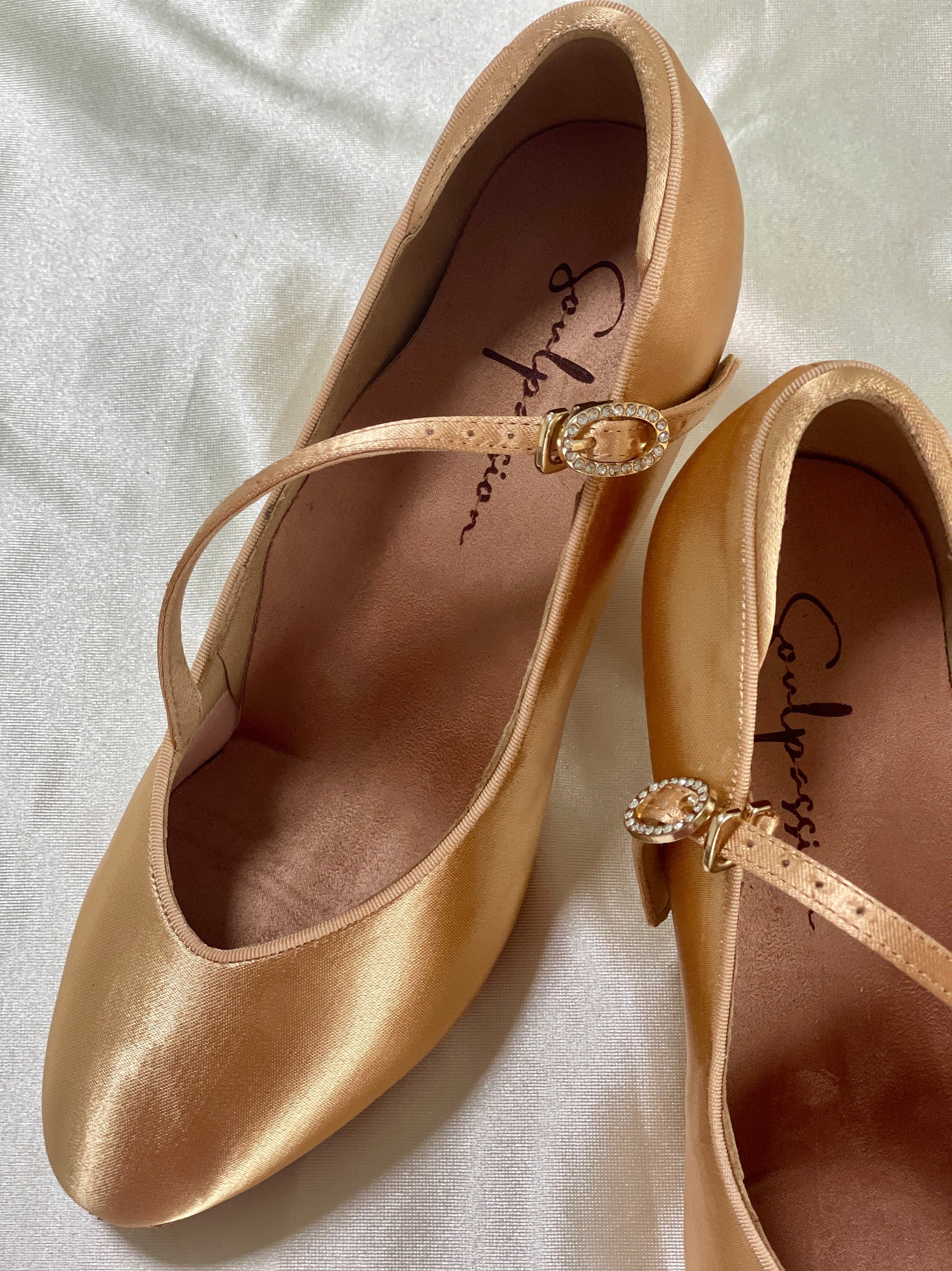 Style 204 - the Foxtrot - Light Tan Satin - 4.5/5.5/6.5/7.5cm Flared Heels