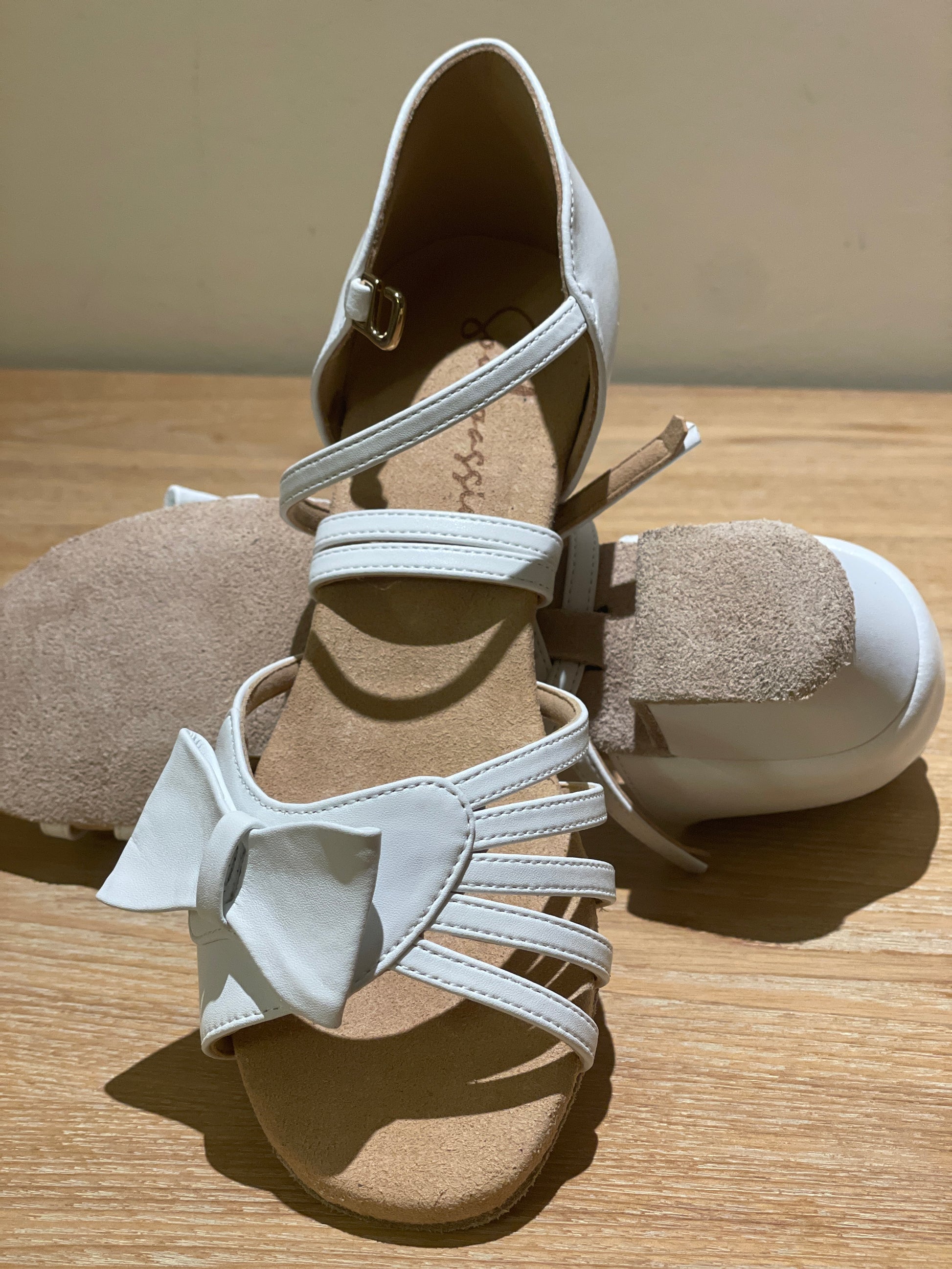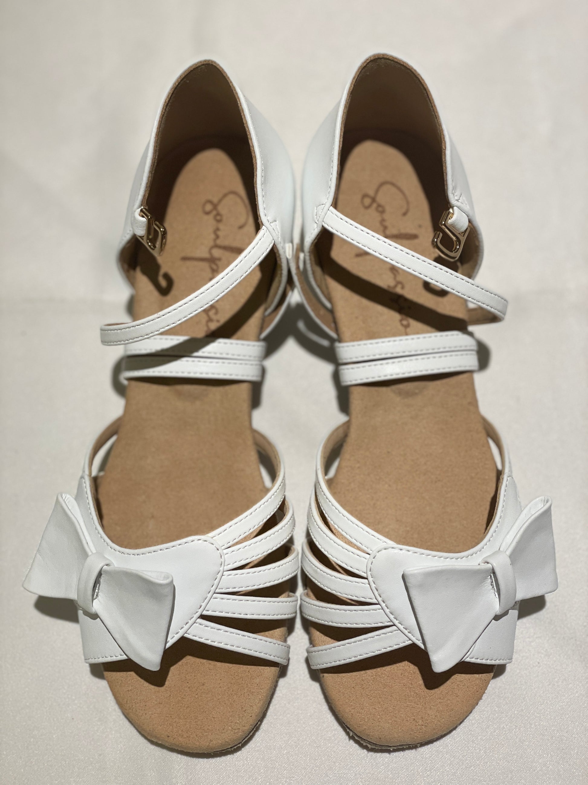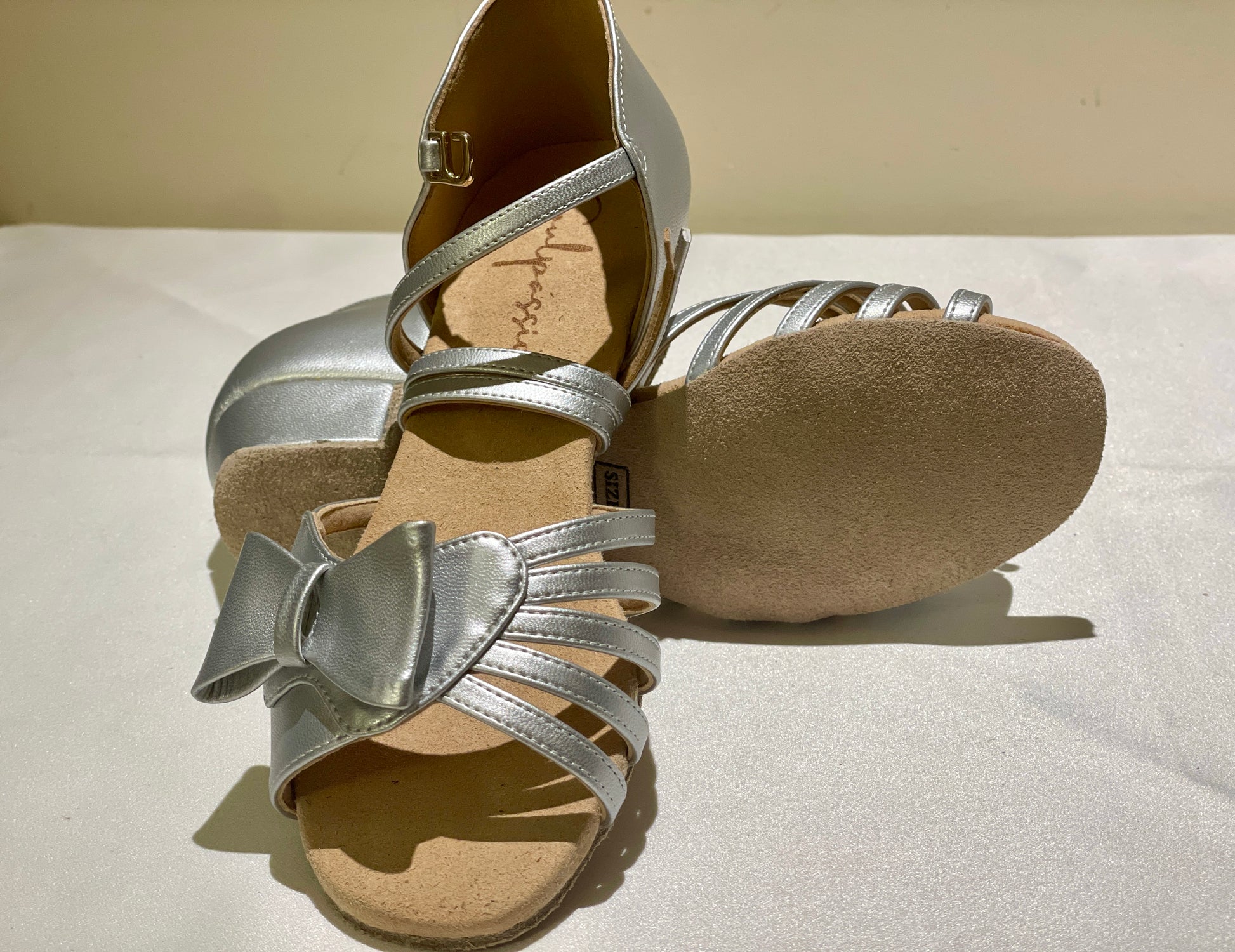 With a chic bow and a sophisticated White/Silver leather design, Style 602 Princess will make you a real Princess not only in stage and floor but anywhere. These 3.5cm heels provide a comfortable height without sacrificing style.
