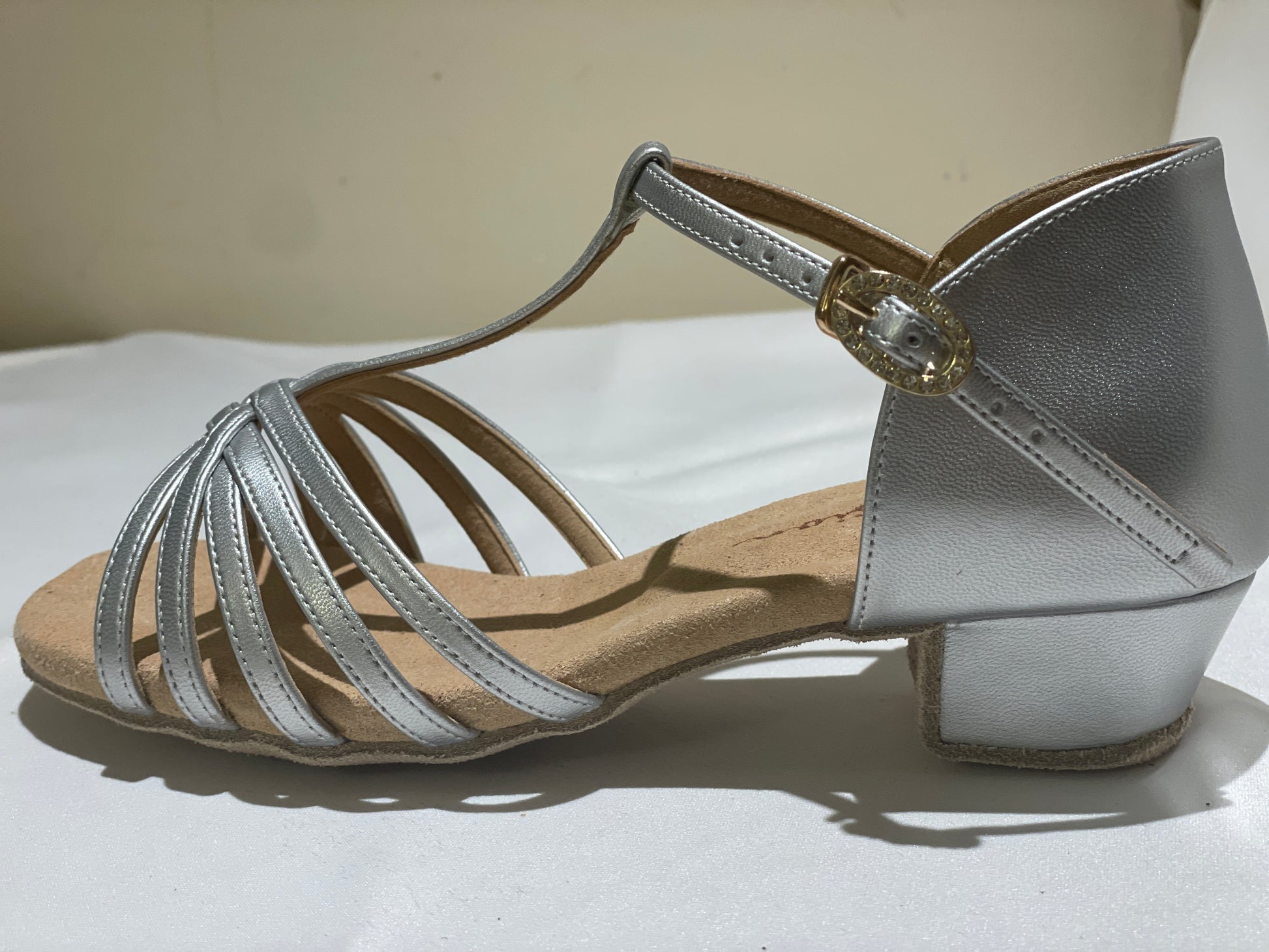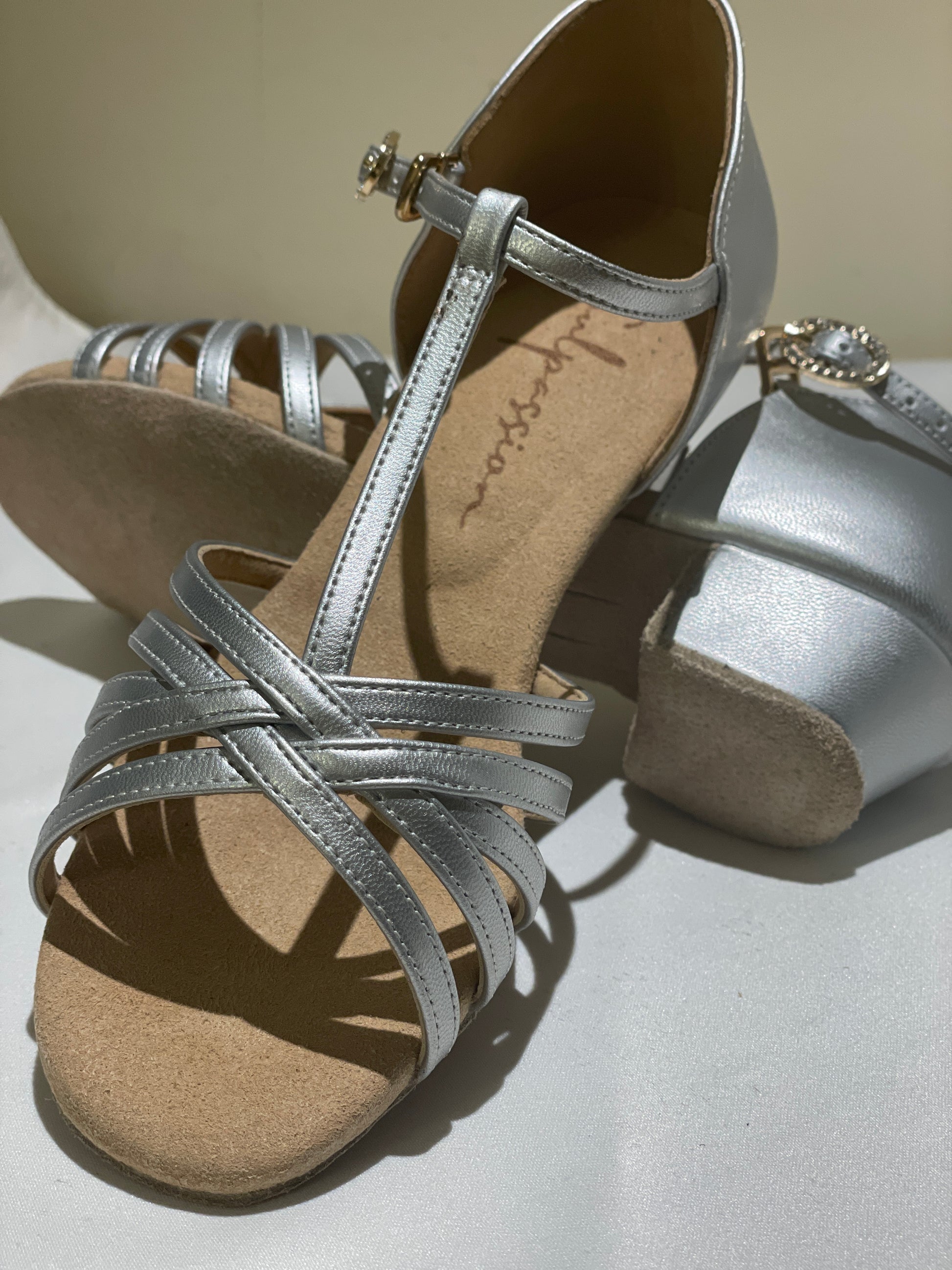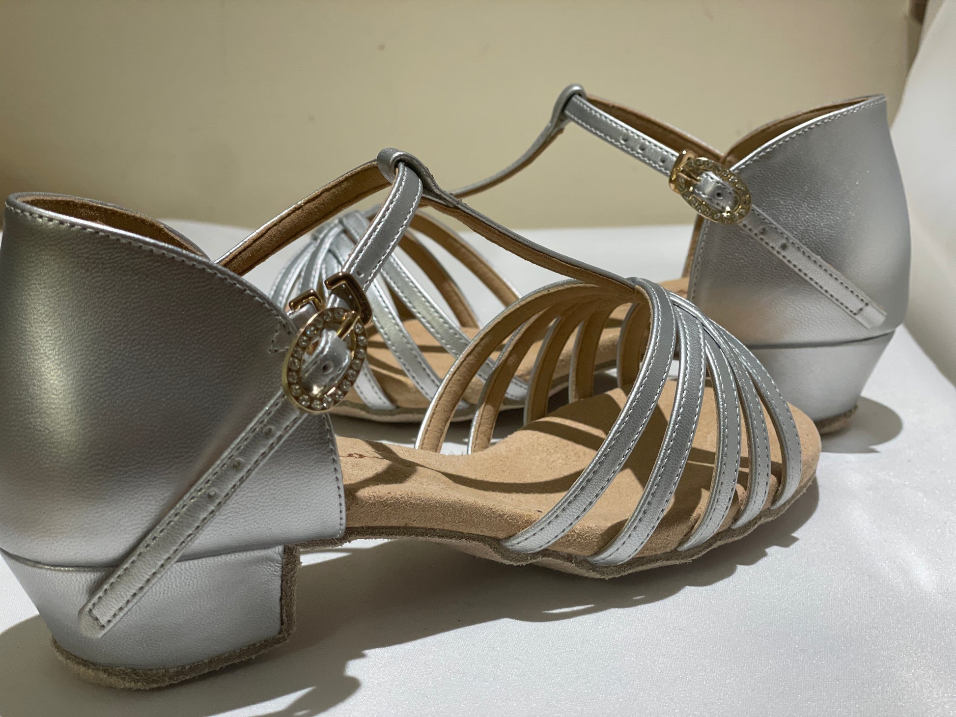 Style 605 - T-bar - White/Silver Leather 3.5cm Heels